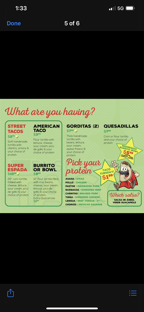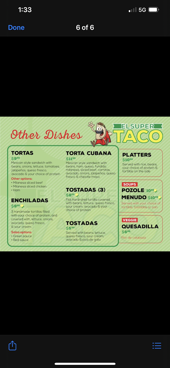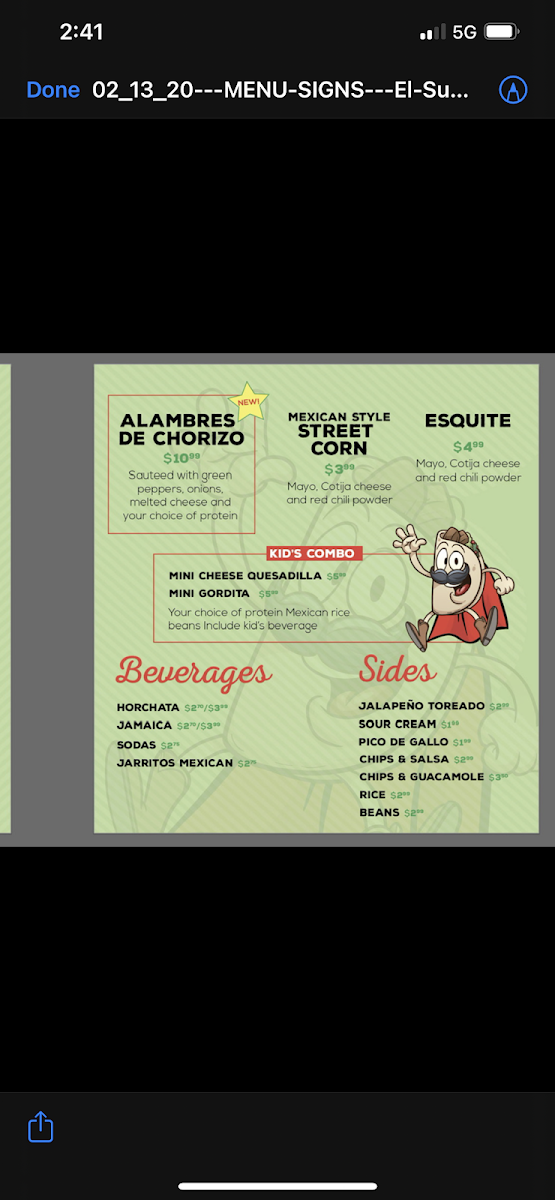 El Super Taco 2 Menu
